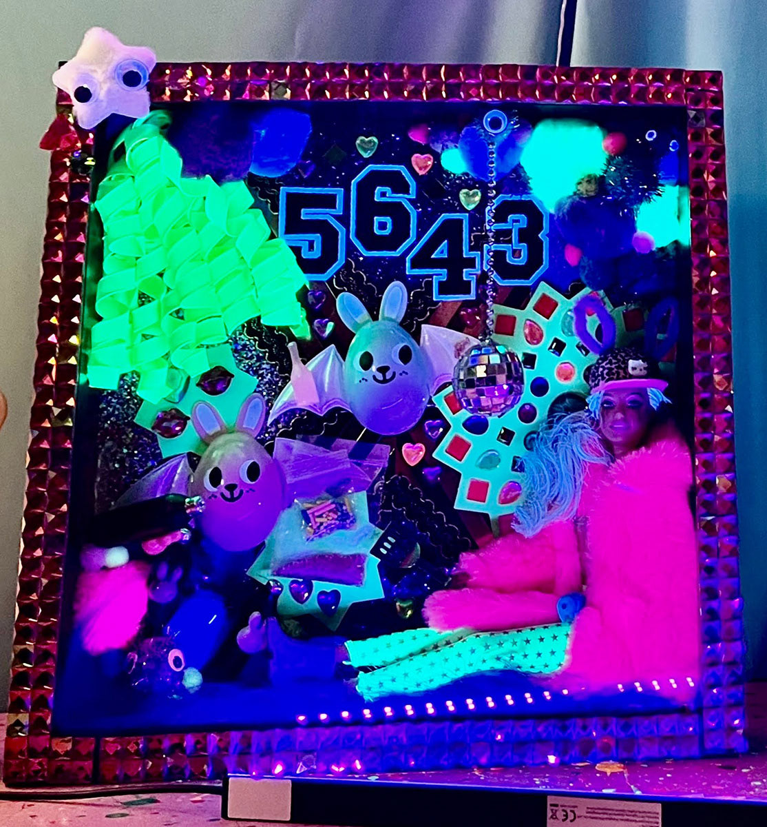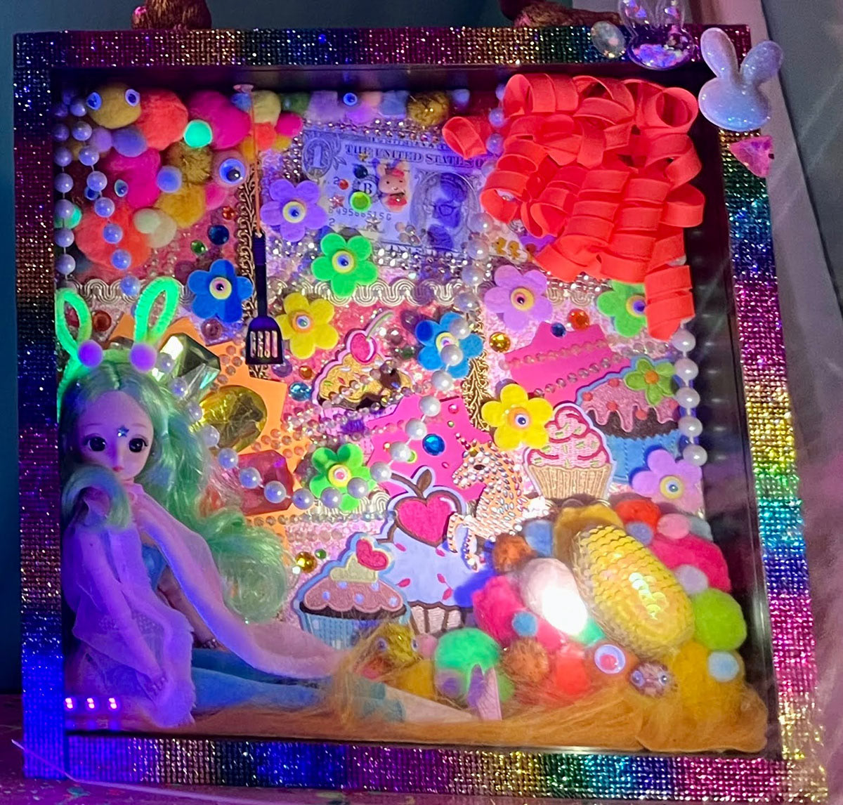 Bad Rabbit and Good Rabbit were created for Jesus Take the Wheel, 2025. These shadowboxes are filled with personal and Friendmoon lore stretching back to 2014 when the friend group’s fractals had just begun to intermingle. A direct expression of Laura’s own relationship to the essential duality of good and bad rabbitry in The Fry (aka life, existence, the universe, and all magic, joy, and hardship therein), it also reflects hermetic principles including the notion of Polarity and the spectrum on which all aspects of our lives are moving back and forth. It seeks to remind us that if one gets too bad, that’s a good thing, and if one gets too good, that can become bad.