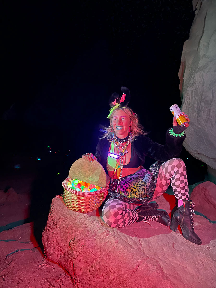Traditional plastic Easter eggs filled with blinking LEDs placed across the beautifully cold, dark desert landscape and rock formations. This 4 time annual tradition is designed to ignite the wonder of reclaiming Easter as our own. While everyone can hunt for eggs, it is geared toward new guests as an interactive nighttime surprise. After a group ceremony, it is announced that there’s a secret waiting around the canyon corner, and whoever brings back the most bounty will receive a gift, perhaps bedazzled spatulas or crick crack.